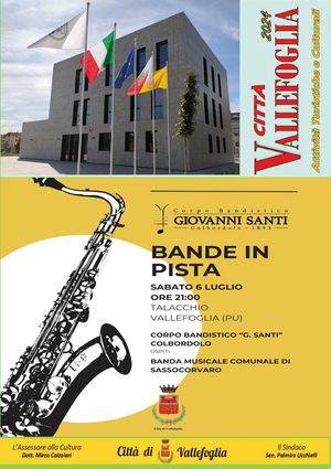 CITTA’ DI VALLEFOGLIA: “Bande in Pista” a Talacchio, con il Corpo Bandistico G. Santi Colbordolo e la Banda musicale Comunale di Sassocorvaro