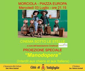 CITTA’ DI VALLEFOGLIA: a Morciola in Piazza Europa mercoledì 3 luglio 2024, riparte la rassegna di cinema sotto le stelle