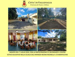 CITTÀ DI VALLEFOGLIA: iniziato ieri 1° luglio 2024, con la partecipazione di 100 ragazzi il Centro Estivo Educativo nella Scuola dell’Infanzia Regina Reginella 1 di Montecchio