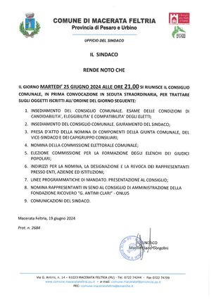 Con grande soddisfazione, si comunica che ieri il Sindaco Sen. Palmiro Ucchielli ha ufficialmente prestato giuramento per il suo terzo mandato…