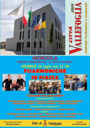 CITTÀ DI VALLEFOGLIA: domani 26 luglio 2024, musica popolare con lo spettacolo di “Fisarmoniche e organetti in piazza” al Centro Commerciale “Le Cento Vetrine” di Morciola