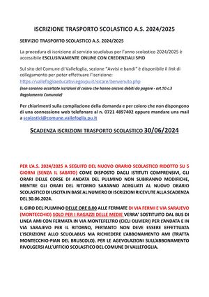 SERVIZIO TRASPORTO SCOLASTICO A.S. 2024/2025
