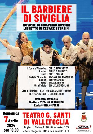 CITTÀ DI VALLEFOGLIA: Domenica 7 aprile 2024, dopo la recente Tournèe svolta in Cina “Il Barbiere di Siviglia” fa il suo debutto al Teatro “G. Santi di Bottega”