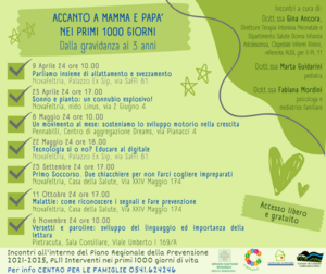 Ciclo di incontri all’interno del “Piano Regionale della Prevenzione 2021 – 2025, PL11 Interventi nei primi 1000 giorni di vita”, rivolti a genitori…