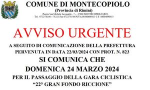 Il tratto di strada che collega Montecerignone fino a Bivio Serra Nanni sarà impegnato dal passaggio dei partecipanti alla Gran Fondo Riccione