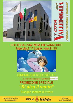 CITTA’ DI VALLEFOGLIA: domani, mercoledì 17 luglio 2024, continua la rassegna di “Cinema sotto le stelle”.