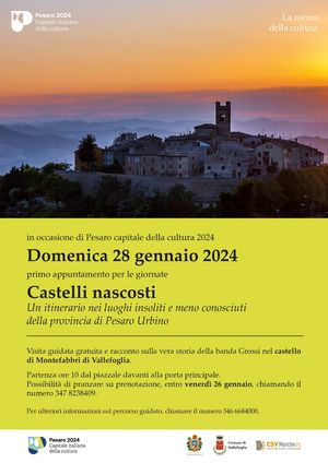 VALLEFOGLIA, Capitale Italiana della cultura 2024, domenica 28 gennaio percorso guidato a Montefabbri