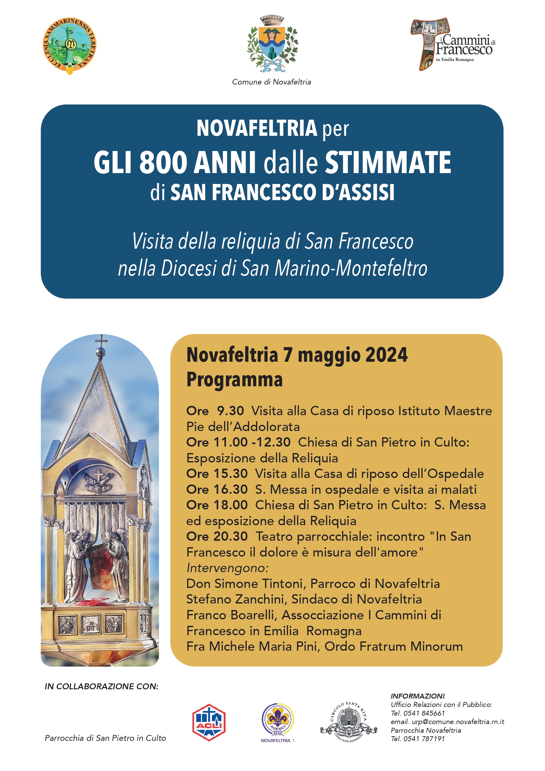 Vi informiamo che martedì 7 maggio 2024 la Reliquia di San Francesco raggiungerà il Comune di Novafeltria.