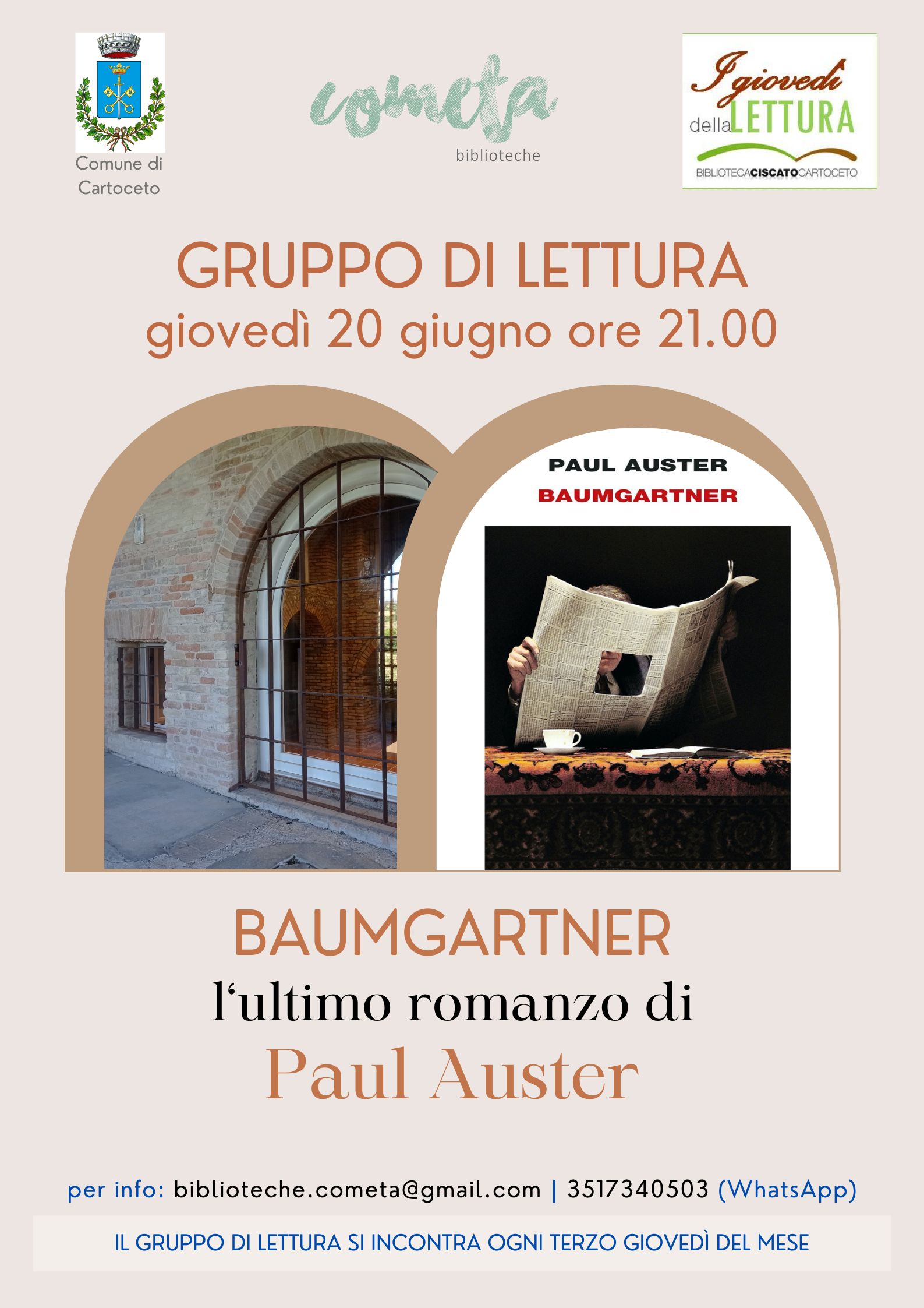 Il libro scelto è Baumgartner, l'ultimo romanzo del grande scrittore americano Paul Auster, scomparso recentemente.