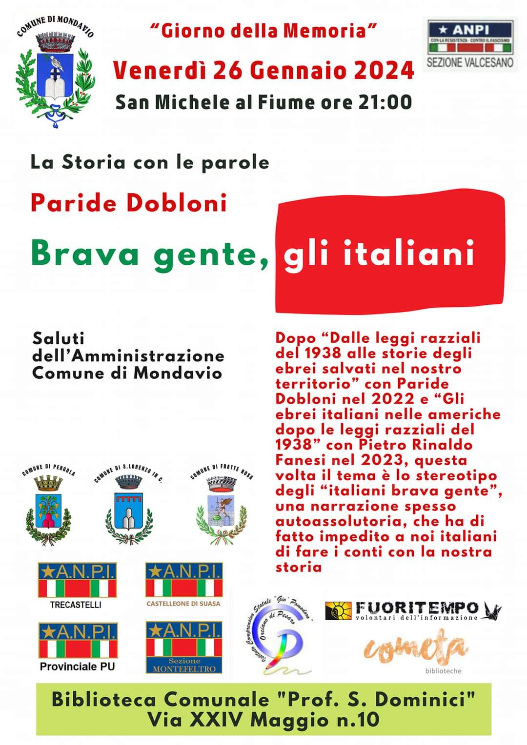 L'incontro è organizzato dal Comune di Mondavio, ANPI Valcesano e Gruppo Fuoritempo.