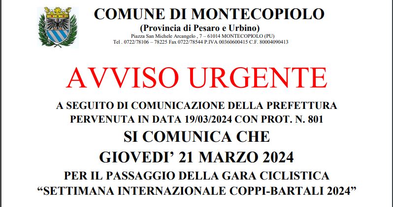 Per la giornata di giovedì 21 marzo è prevista la chiusura temporanea dalle ore 12:50 alle 13:20 circa della strada Provinciale n.6.