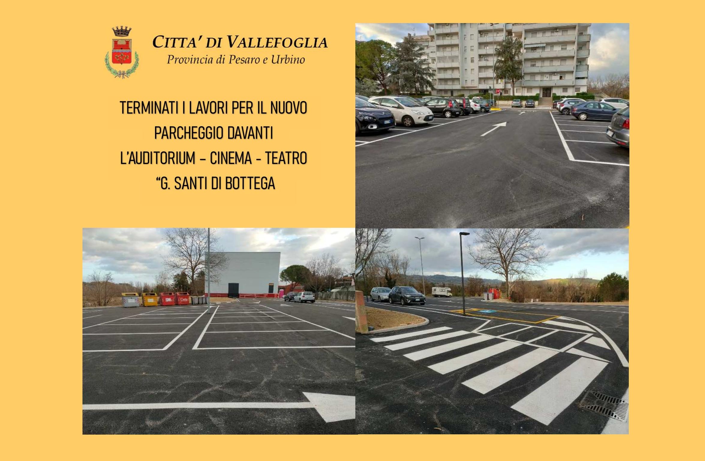 Il Sindaco della Città di Vallefoglia e l’Assessore ai Lavori Pubblici Angelo Ghiselli, comunicano che sono terminati i lavori per la realizzazione del nuovo parcheggio adiacente all’Auditorium Cinema Teatro G. Santi di Bottega che a breve vedrà la sua inaugurazione. Questo nuovo parcheggio, precisa il Sindaco con circa 35 posti auto verrà darà a ai cittadini residenti, agli insegnanti, ai genitori e quanti si troveranno a frequentare il Teatro la possibilità di trovare posteggio con la propria autovettura molto più facilmente senza non congestionare l’ingresso dei plessi scolastici. In occasione della realizzazione del nuovo parcheggio, continua il Sindaco abbiamo anche rinnovato tutto il manto stradale di Piazza Pio La Torre, rifacendo completamente tutta la segnaletica orizzontale anche in via della Libertà, e messo a dimora diverse piante riportando in tutta la zona una sensazione di ordine e decoro urbano.