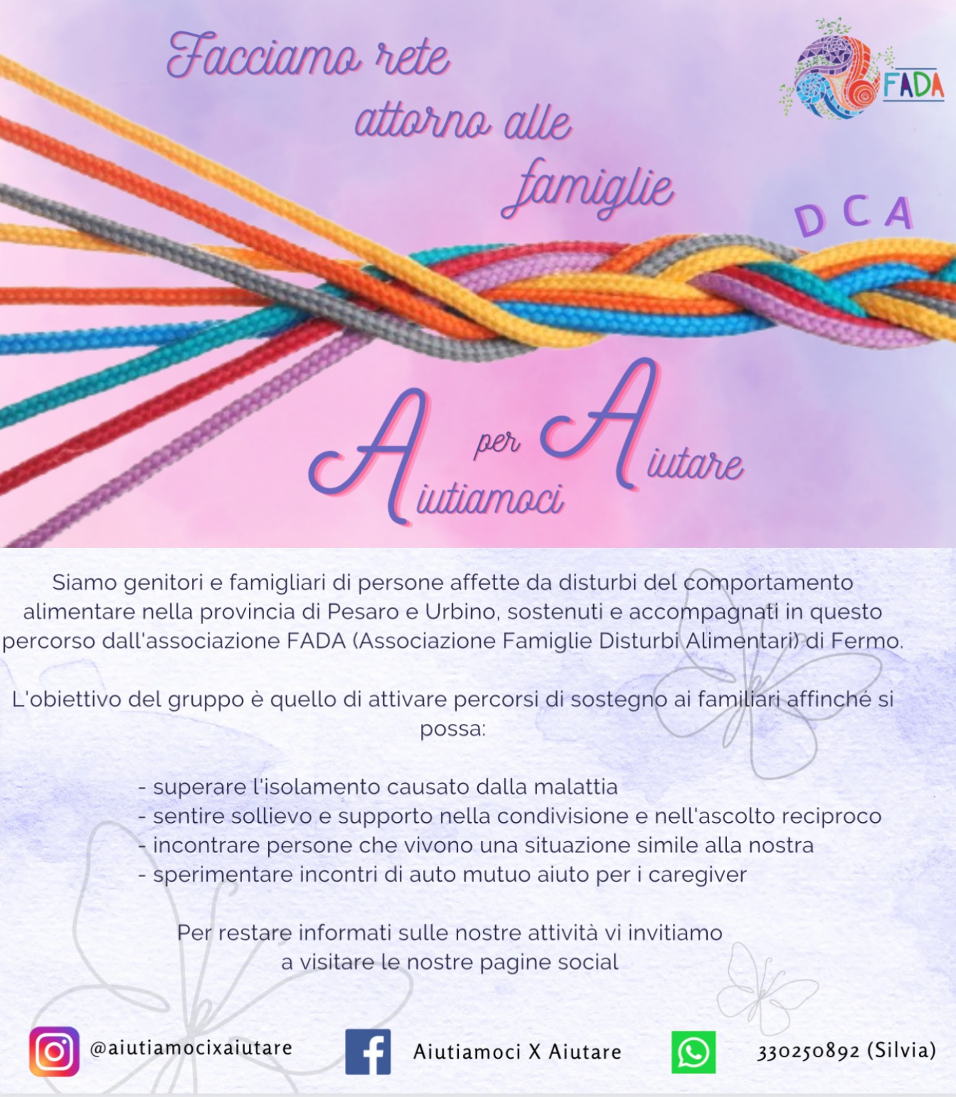 FADA è un’associazione marchigiana di volontariato sorta nel 2016 per iniziativa di familiari di persone con Disturbi del Comportamento Alimentare.