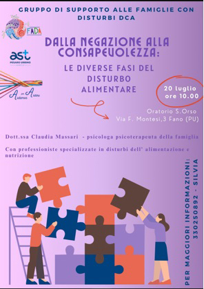 Il prossimo INCONTRO PER FAMILIARI DI PERSONE CON DISTRURBI DEL COMPORTAMENTO ALIMENTARE si terrà in data 20 LUGLIO ORE 11, presso ORATORIO SANT’ORSO – VIA MONTESI 3 FANO