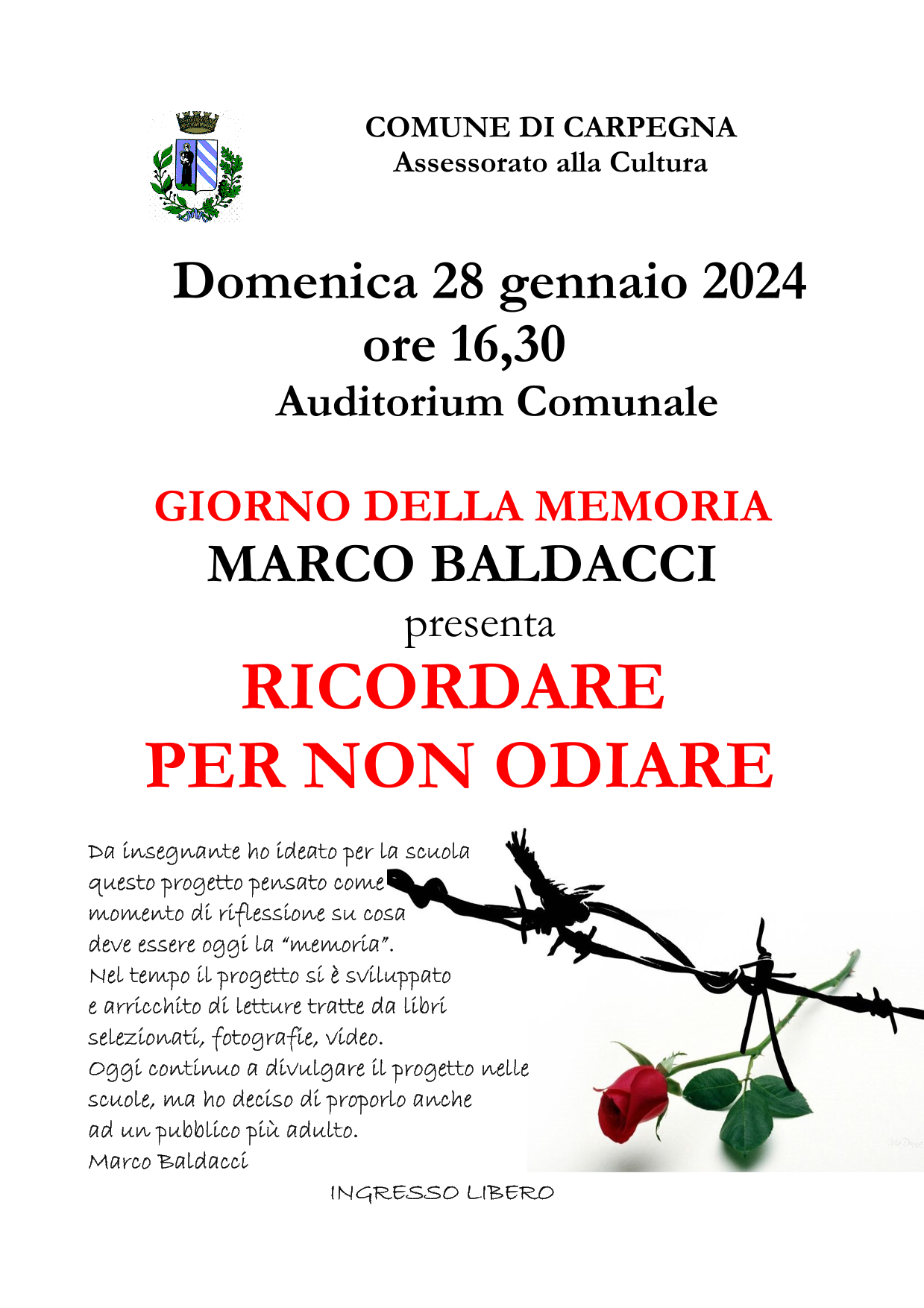 In questo giorno, ogni anno, si celebra la Giornata internazionale della Memoria, come stabilito dalla Legge n. 211 del 20 Luglio 2000, al fine di onorare la memoria delle vittime dell'Olocausto e di coloro che hanno messo a rischio la propria vita per proteggere i perseguitati dalle leggi razziali.