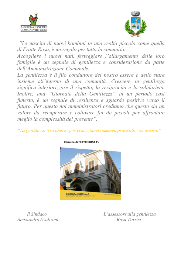 Giornata Nazionale della Gentilezza ai nuovi nati.