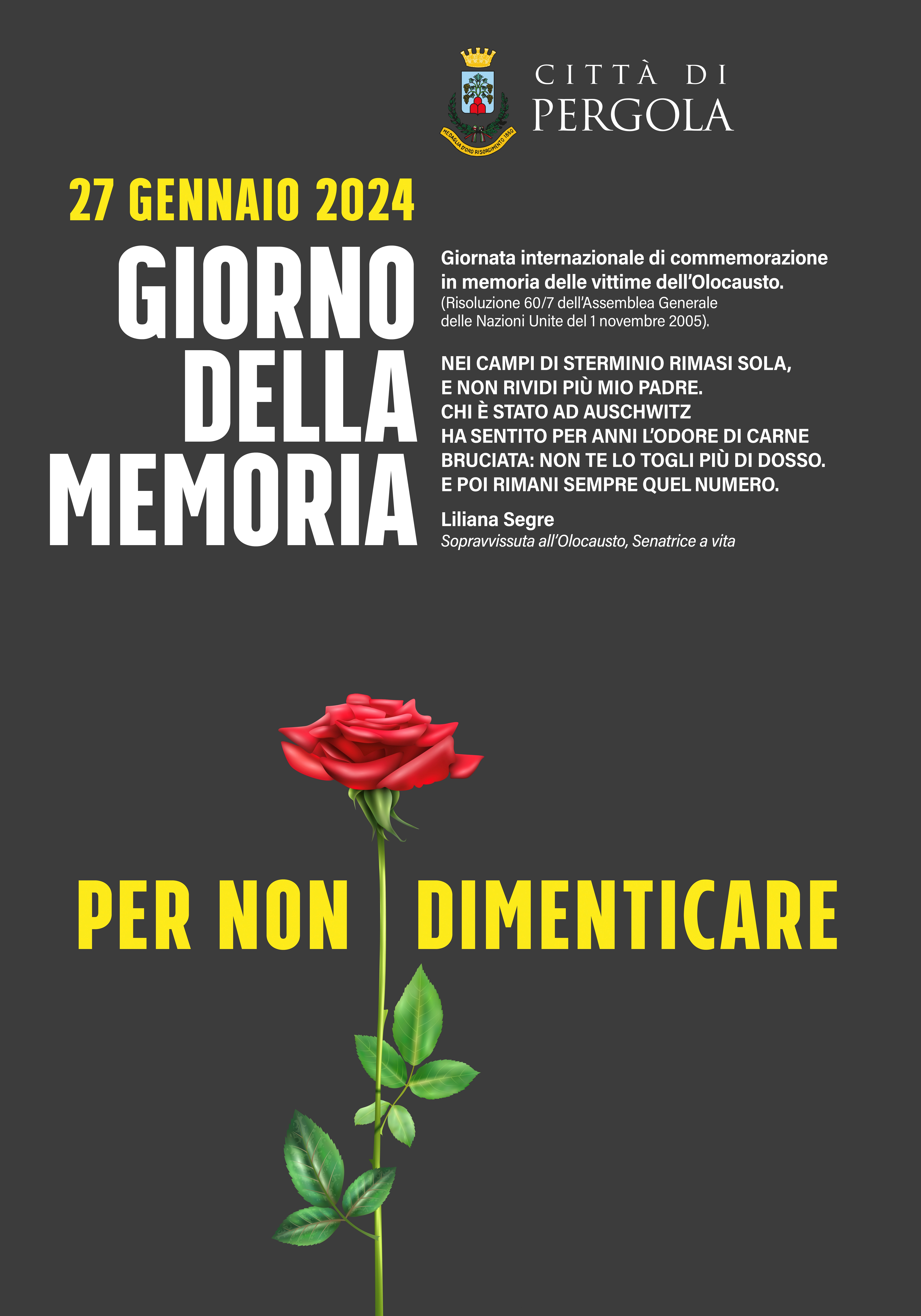 Per celebrare la Giornata internazionale di commemorazione in memoria delle vittime dell'Olocausto il giorno sabato 27 gennaio 2024 dalle ore 10:00 alle ore 13:00 presso il Teatro Angel Dal Foco si terrà un incontro dal titolo "Giornata della memoria - Shoah e Internati Militari Italiani".