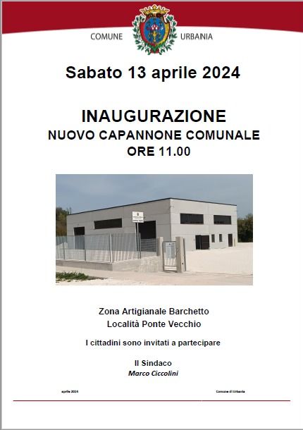 Sabato 13, ore 11.00, verrà inaugurato il nuovo Capannone Comunale