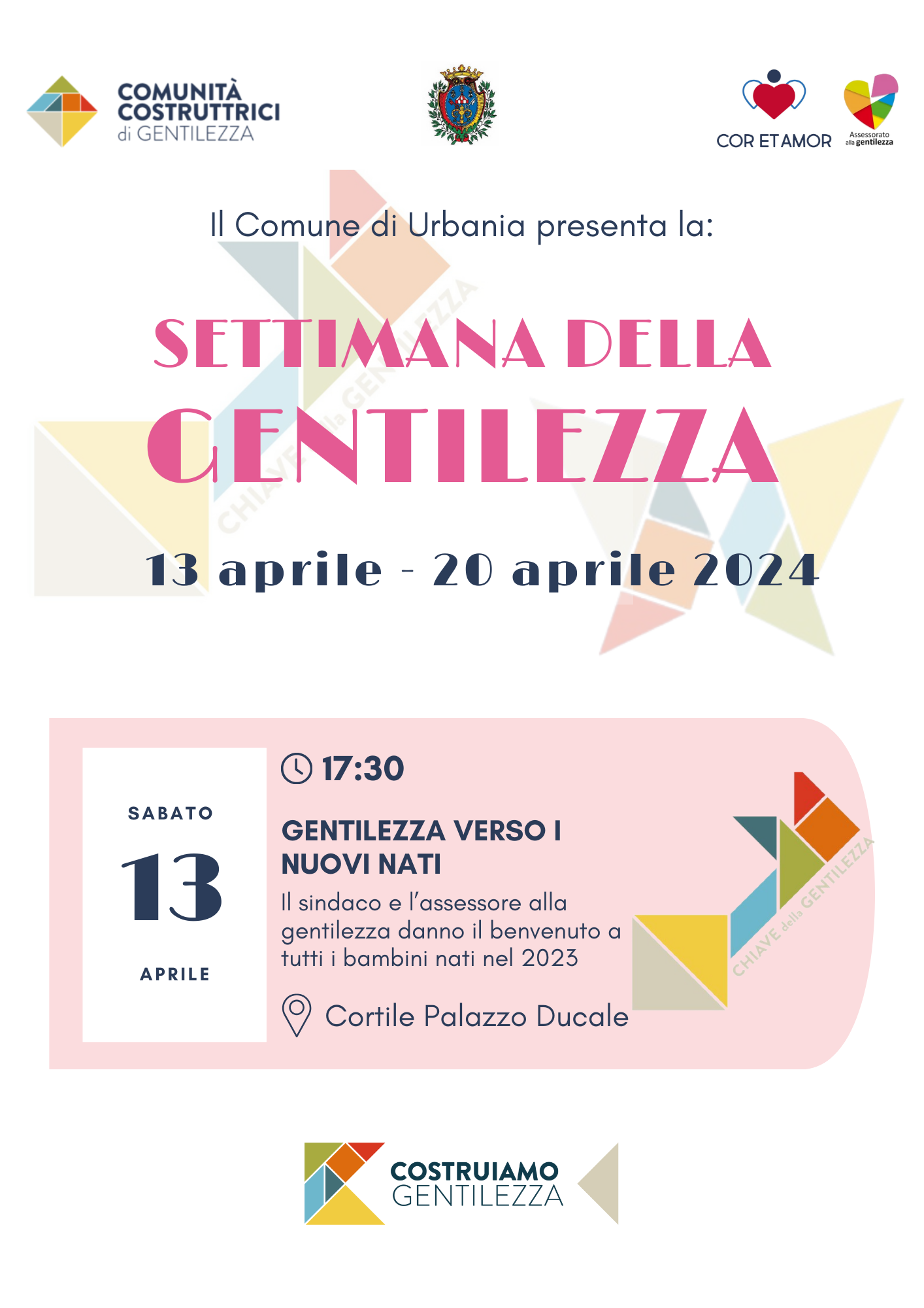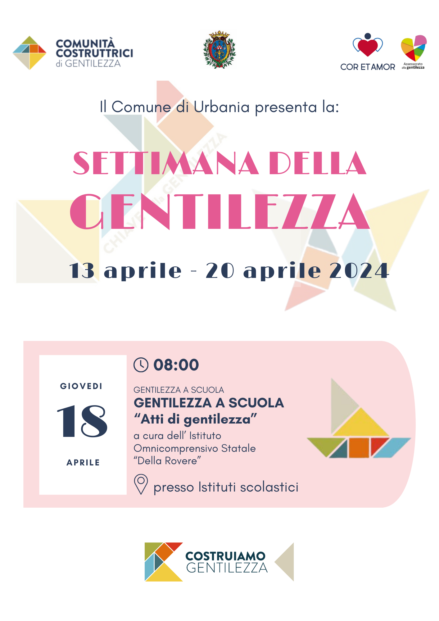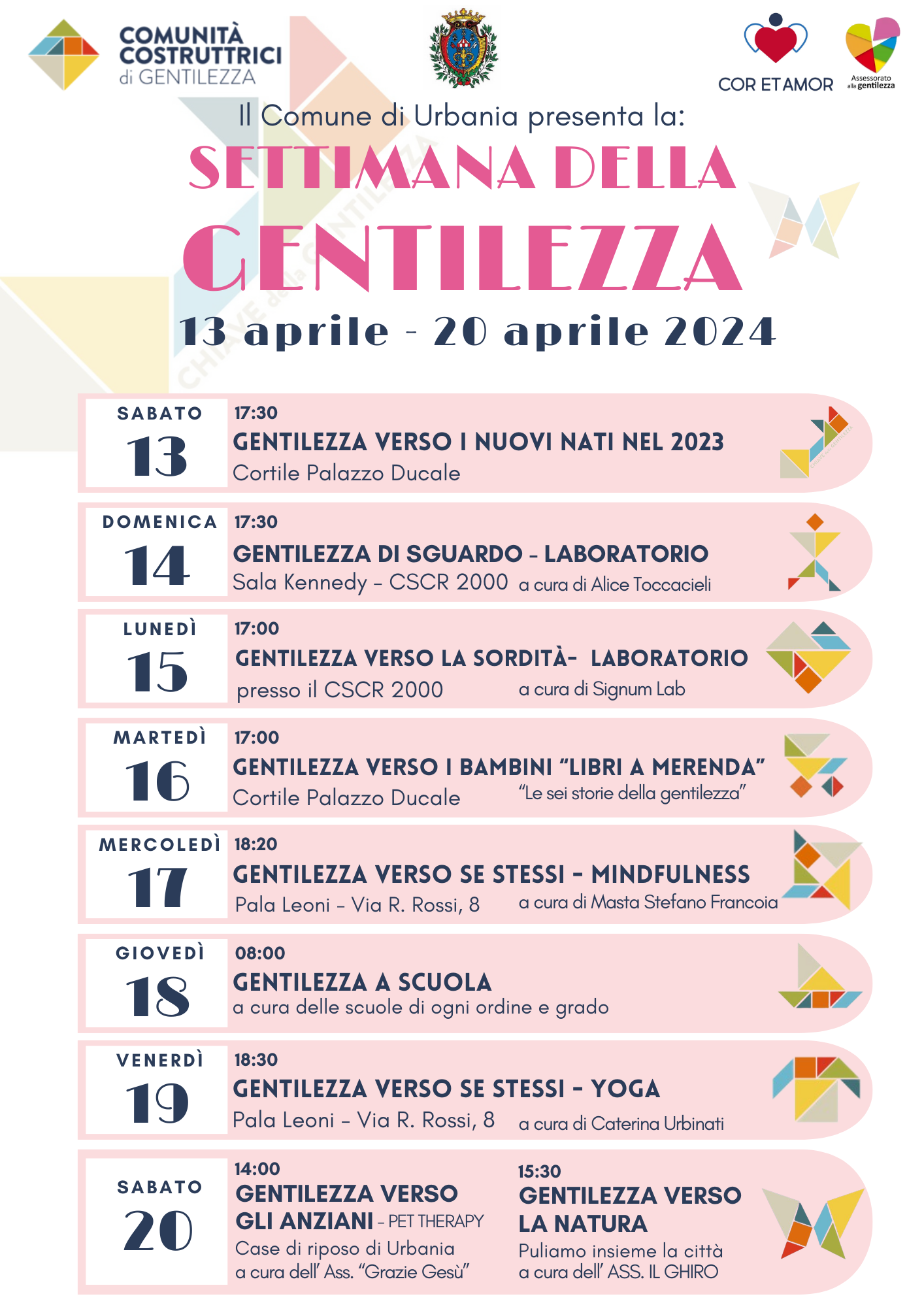 Il Comune di Urbania ha aderito, anche per quest'anno, alla rete delle comunità costruttrici di gentilezza, nell’ambito del progetto nazionale "Costruiamo Gentilezza" promosso dall'Associazione culturale Cor et Amor.