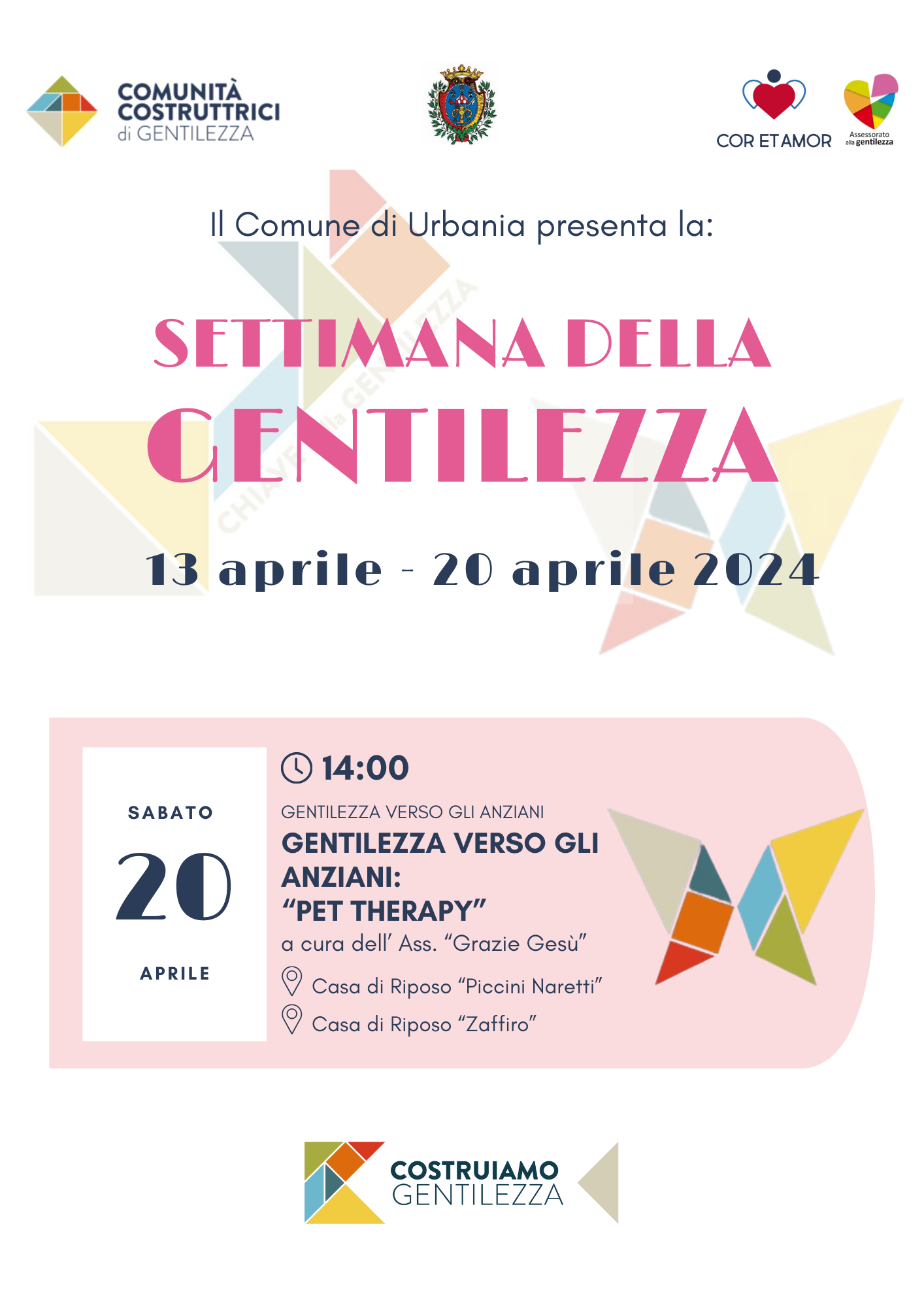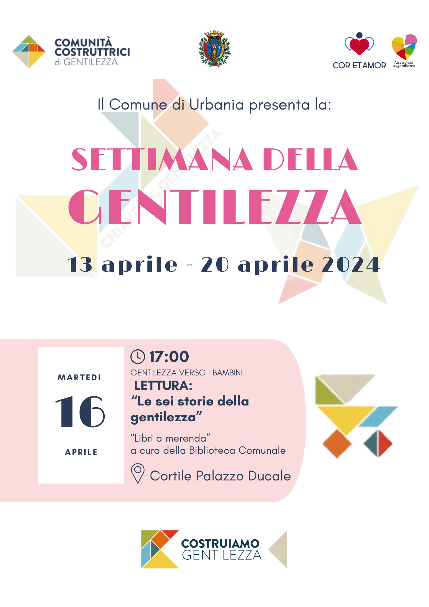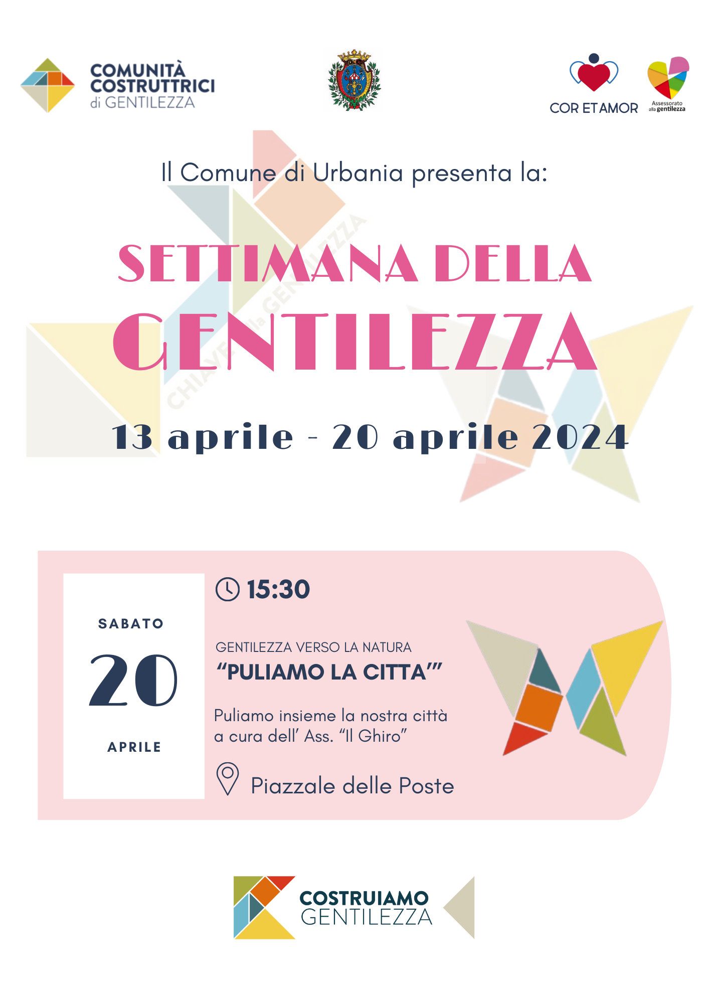 Il Comune di Urbania ha aderito, anche per quest'anno, alla rete delle comunità costruttrici di gentilezza, nell’ambito del progetto nazionale "Costruiamo Gentilezza" promosso dall'Associazione culturale Cor et Amor.