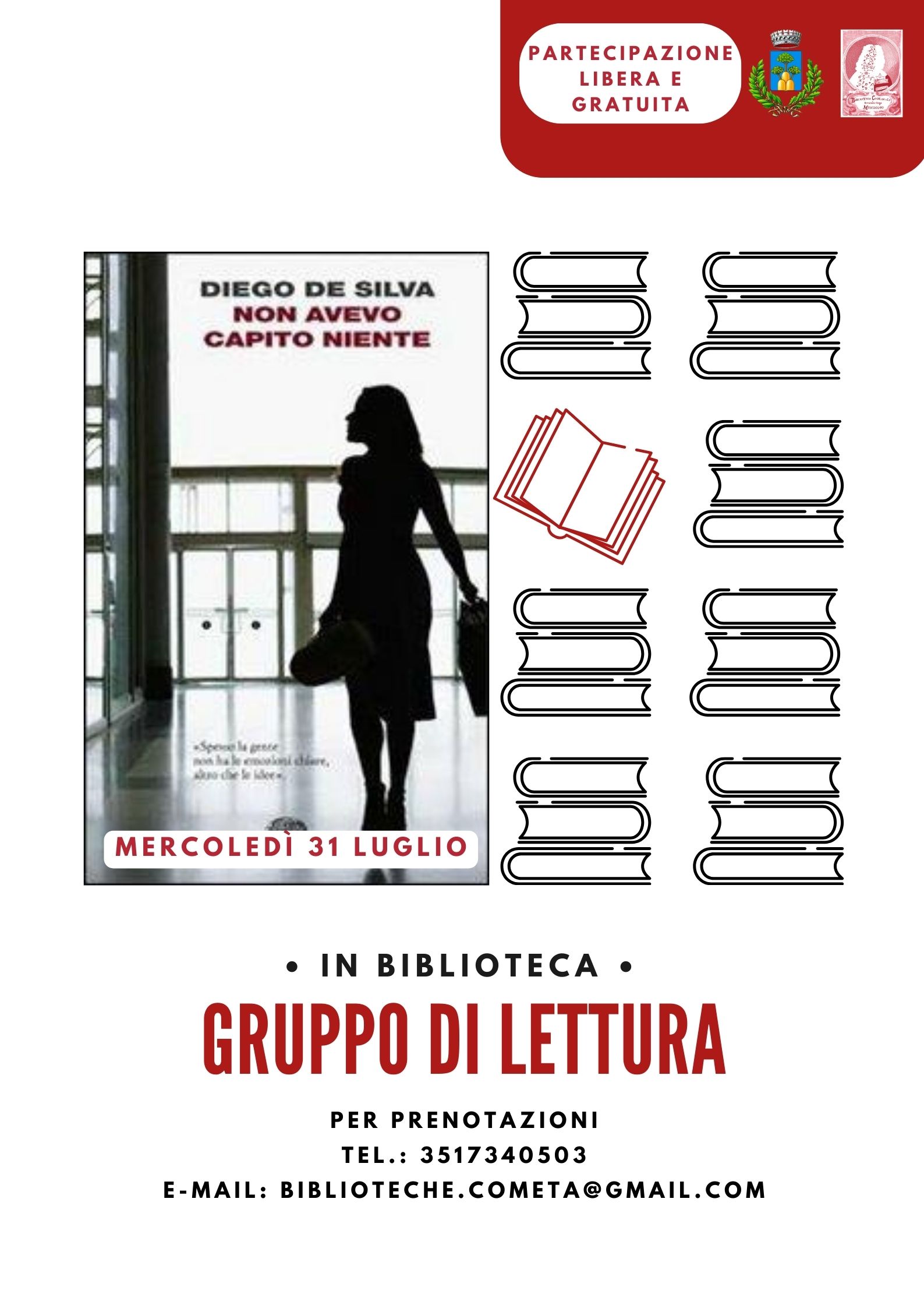La partecipazione è libera e gratuita, per questo appuntamento è necessaria la prenotazione scrivendo al numero 351 374 0503 o a biblioteche.cometa@gmail.com