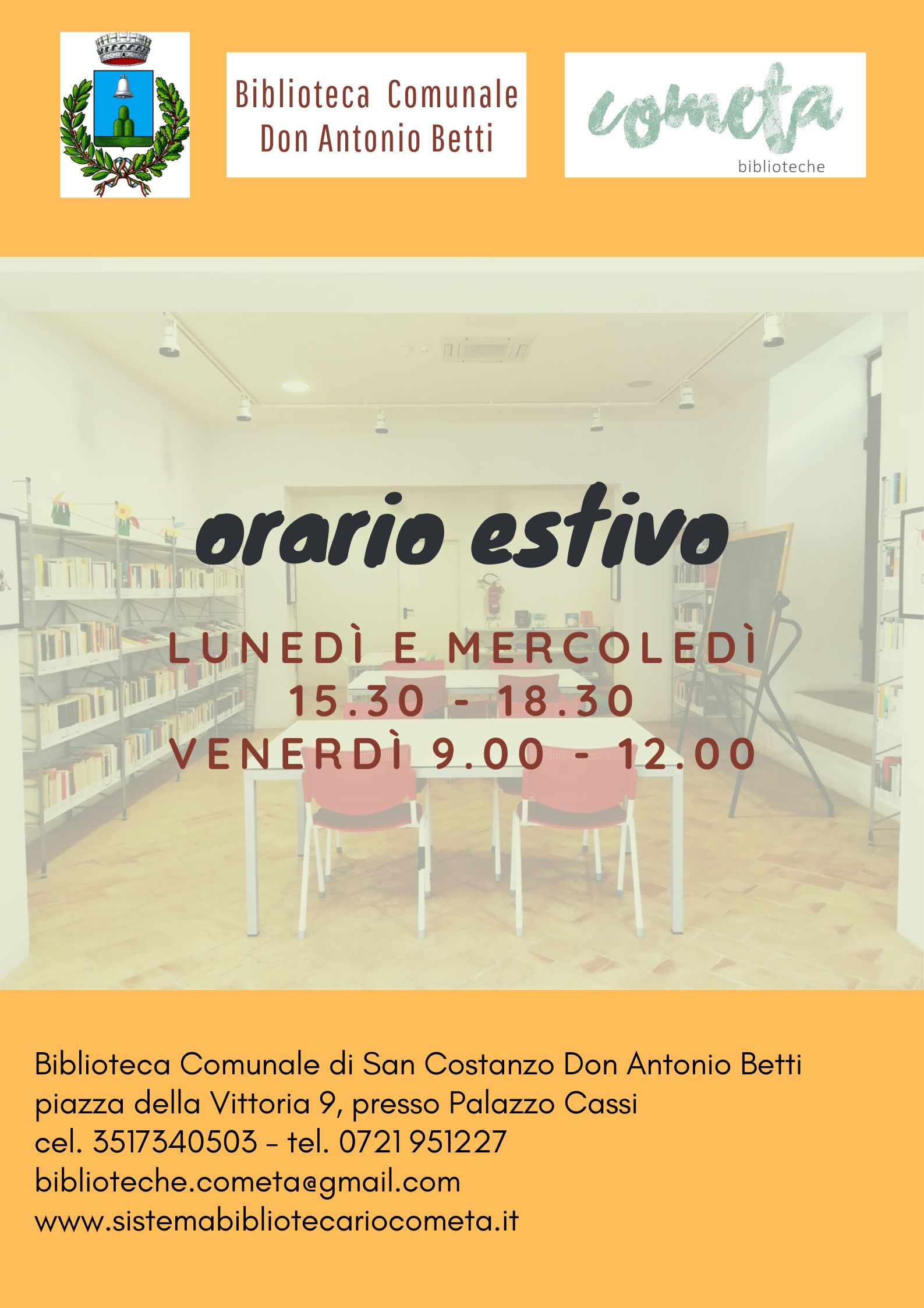 ORARIO ESTIVO BIBLIOTECA COMUNALE "DON ANTONIO BETTI"