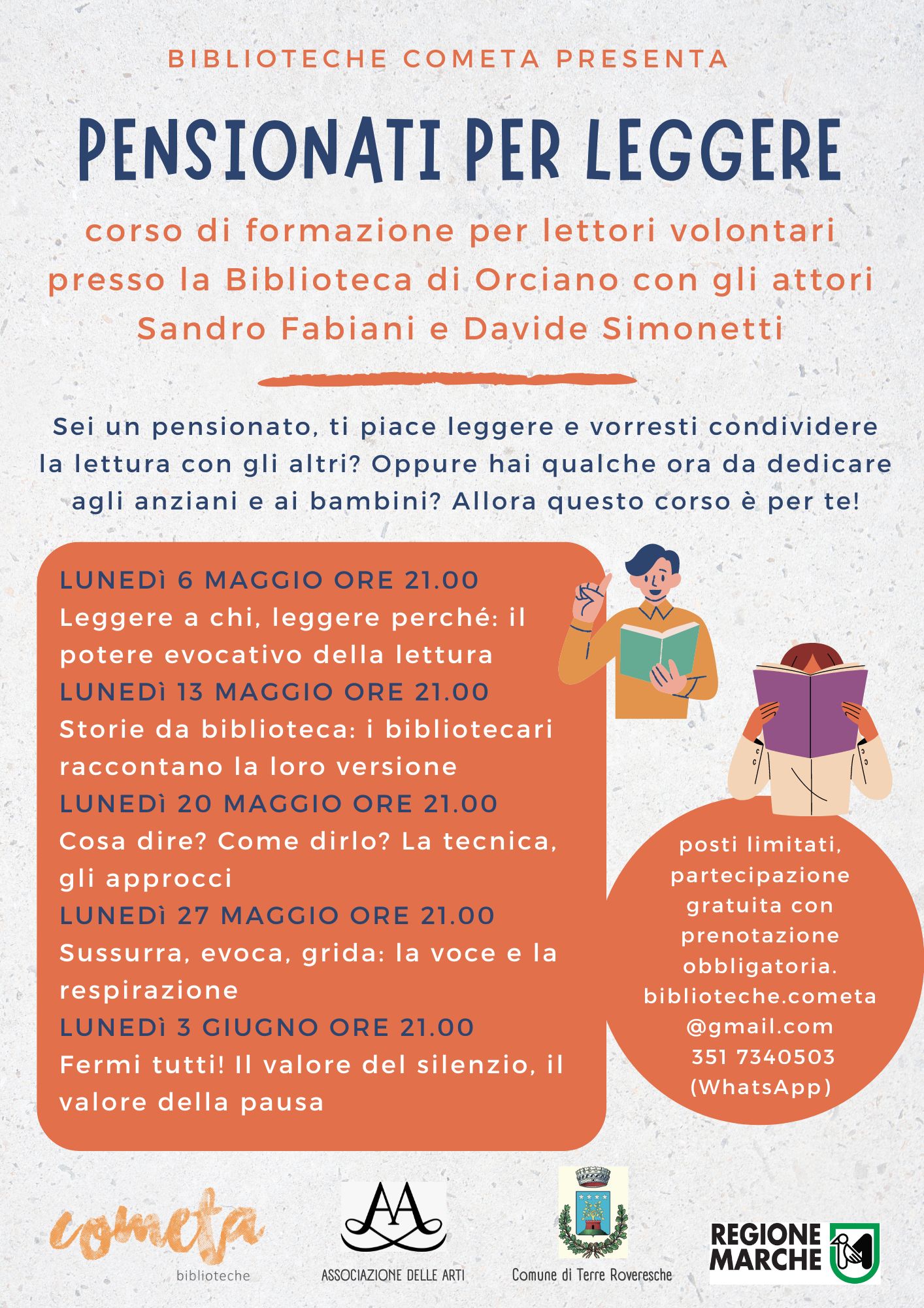 Corso di formazione per lettori volontari con gli attori Sandro Fabiani e Davide Simonetti, per formare un nuovo gruppo di lettori in grado di andare a leggere non solo ai bambini, ma anche agli anziani, in biblioteca e nelle residenze protette.